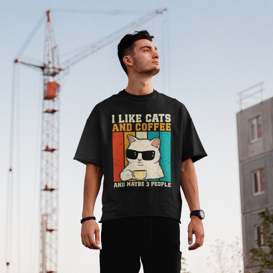 Coffee First, Cats Always – The Ultimate Unisex Oversized Tee for Effortless Cool!